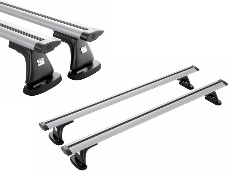 Nowoczesny uniwersalny Aluminiowy Aerodynamiczny Bagażnik dachowy firmy Amos-Bis. Bagażnik samochodowy montowany w fabryczne mocowania do dachu samochodu.