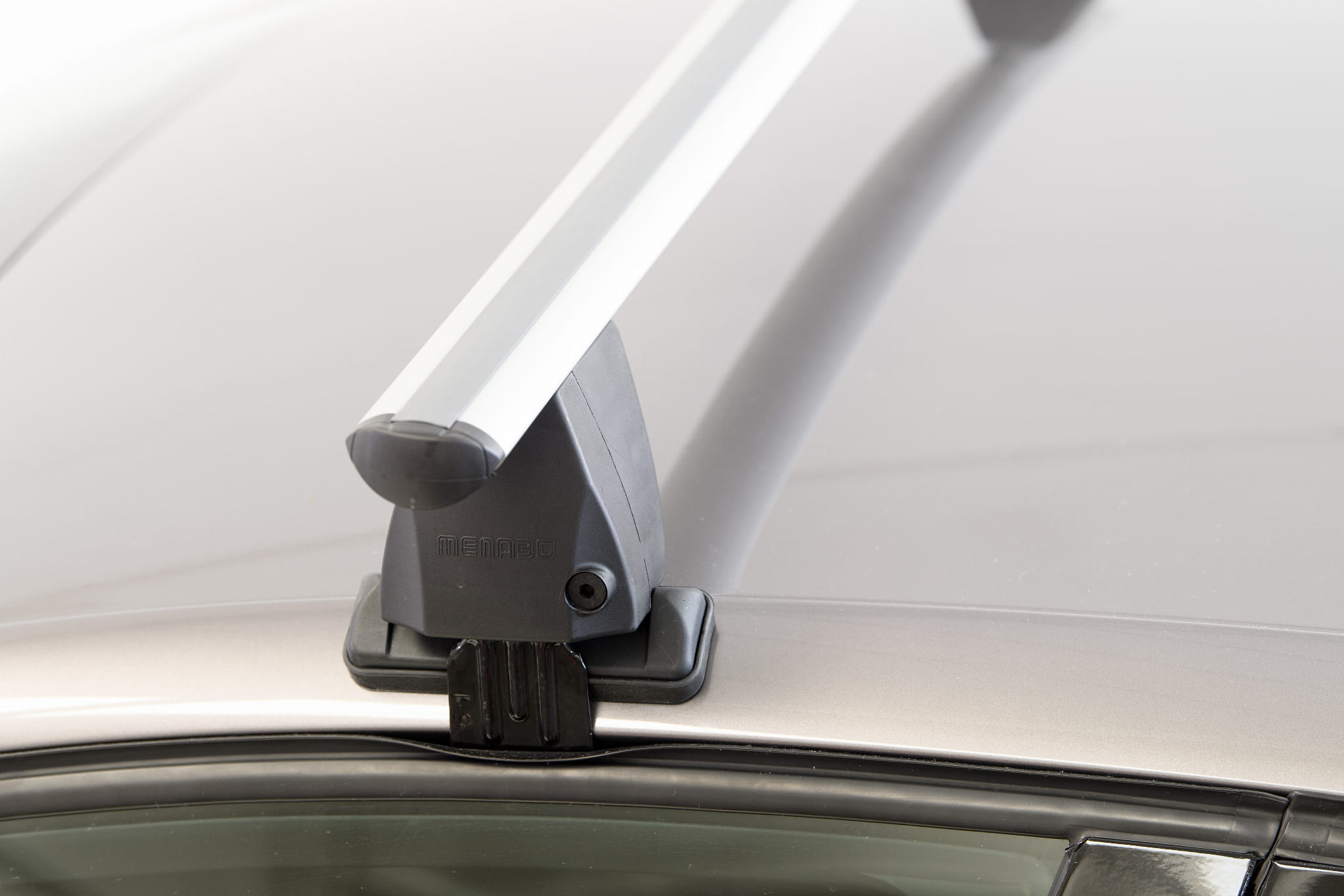 Menabo to tradycyjny bagażnik bazowy (belki + mocowania do dachu). Ten model montowany jest za krawędź dachu.