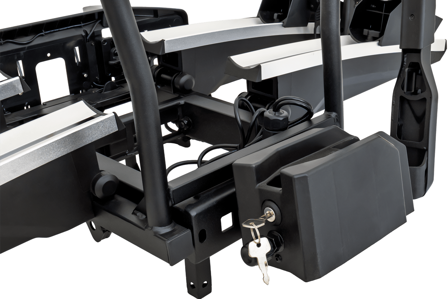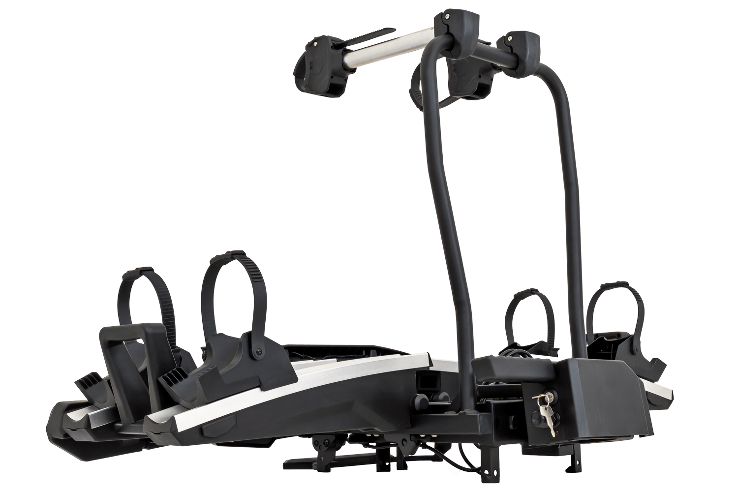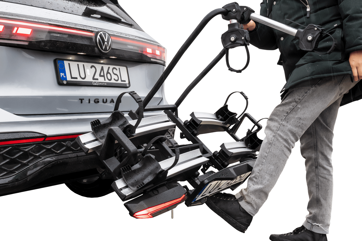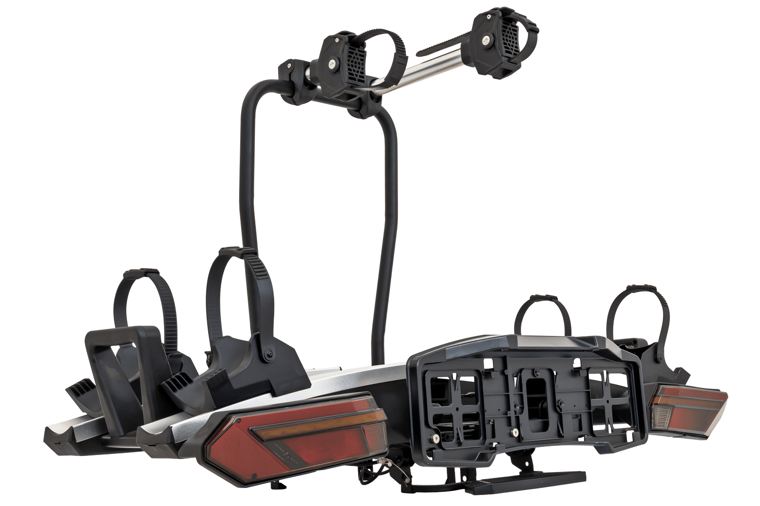 Platforma rowerowa z funkcją składania i nowoczesnymi światłami LED do rowerów elektrycznych. Udźwig do 60 kg, dostęp do bagażnika nawet z zamontowanymi rowerami i podwójne zabezpieczenie. Możliwość rozbudowy i przewozu 3 rowerów.
