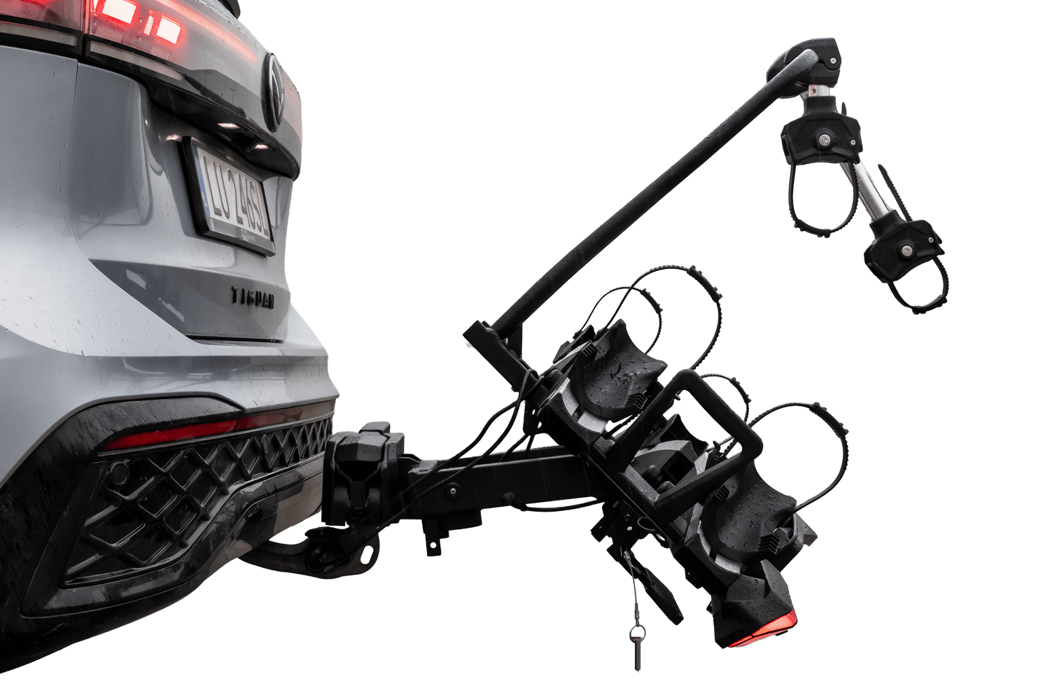 Platforma wyposażona jest także w system uchylania, uruchamiany za pomocą wygodnej dźwigni nożnej. Masz dostęp do bagażnika swojego auta w każdej chwili, również z kompletem rowerów zamontowanych na platformie. Velox 2 to kompletny zestaw z uchwytem na tablicę rejestracyjną oraz lampami LED o nowoczesnym designie.