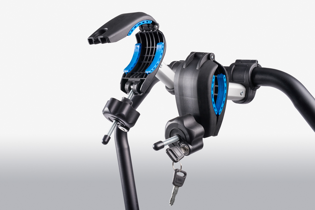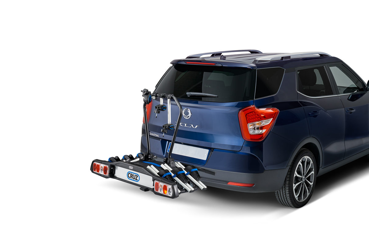 CRUZ Pivot 3 – Atrakcyjny design i funkcjonalność. Pasuje do większości haków holowniczych. Odchylany za pomocą pedału, co umożliwia łatwy i szybki dostęp do komory bagażnika samochodu nawet przy zamontowanych rowerach. Szerokie, regulowane elementy plastikowe do wygodnego mocowania kół. Paski z prostym zapięciem i długością umożliwiającej montaż opon do 4,8’’ – Fatbike. Regulowane ramiona, służące do zabezpieczenia rowerów, pokryte gumą chroniącą ramę. Atrakcyjne światła, które pasują do nowych modeli samochodów. Zamki antykradzieżowe dla zabezpieczają platformę i rowery.