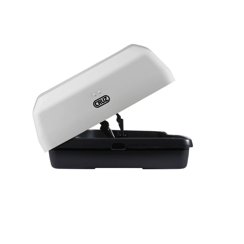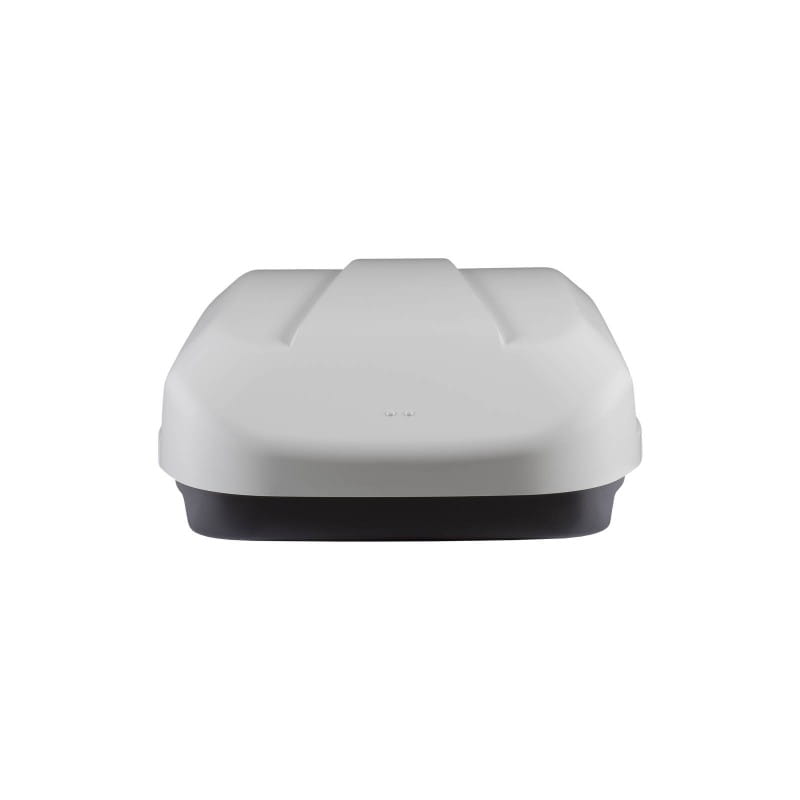 Nowoczesny biały boks dachowy o sportowym i eleganckim wzornictwie.